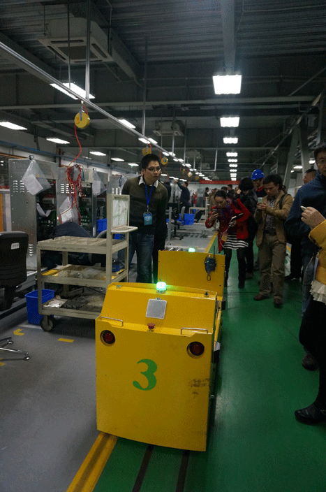 下圖:來賓參觀AGV調(diào)度系統(tǒng)智能機器人