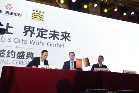 最后,貴州恒豐偉業(yè)房地產(chǎn)開發(fā)有限公司董事長文偉先生、德國威爾公司Otto W?hr ?GmbH總經(jīng)理Jens先生與廣州廣日智能停車設備有限公司副總經(jīng)理黃波先生共同簽署了本次汽車入戶停車設備意向合作協(xié)議。