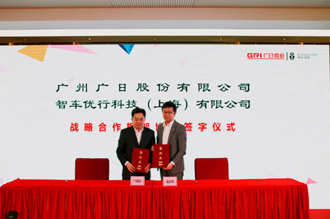 廣日股份董事長孫維元(左)與智車優(yōu)行科技CEO沈海寅(右)簽署合作協(xié)議